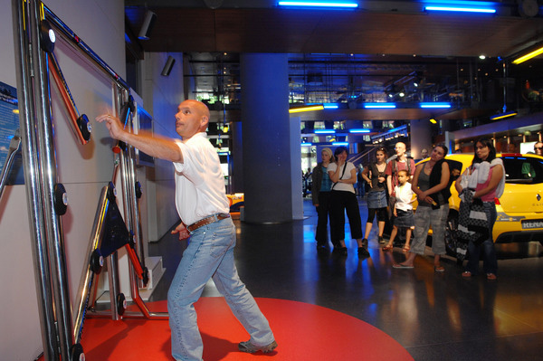 • Des diodes s’allument de manière aléatoire sur une structure métallique quadrillée équipée de 8 lampes que chaque participant doit éteindre le plus rapidement possible en une minute.